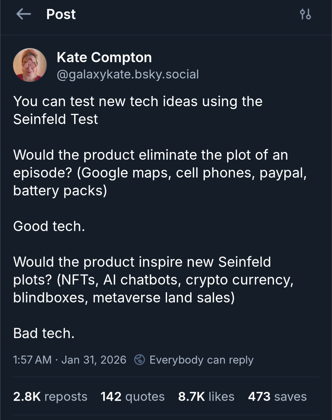 arrow-up1826arrow-down1imageJust ask, "Would Kramer be convinced to get into this?"lemmy.worldAutistoMephisto@lemmy.world to Microblog Memes@lemmy.worldEnglish · 1 day agomessage-square73fedilink