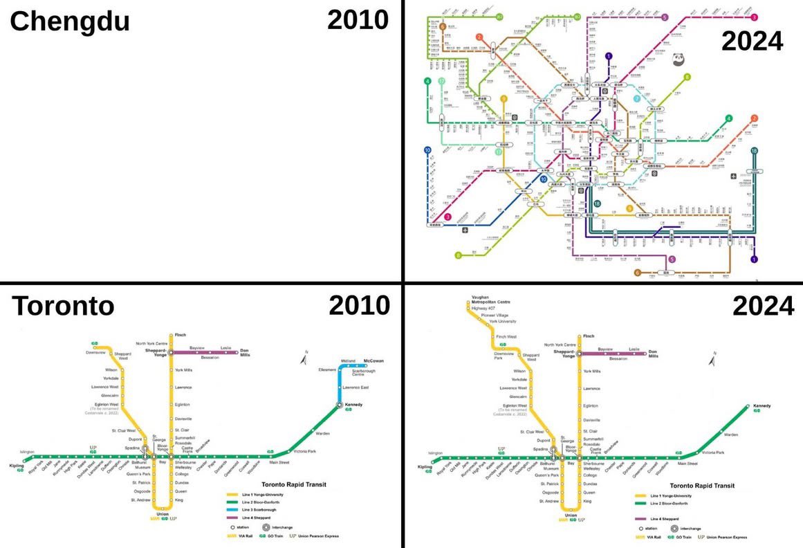 I’m just thinking of the major cities in my U.S. state where the public transit map, before and after, looks like Chengdu in 2010. So as unfortunate as the circumstances are in Toronto, they can be even worse.