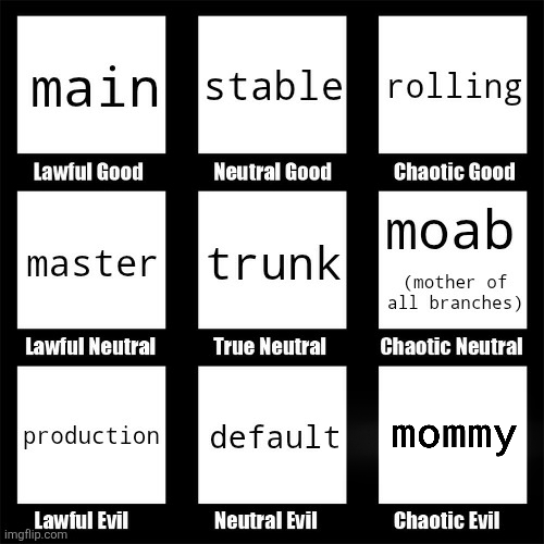 Hellfire103@lemmy.ca to Programmer Humor@programming.devEnglish · 7 months agoWhat do you call your production branch?lemmy.caimagemessage-square53fedilinkarrow-up1501arrow-down113