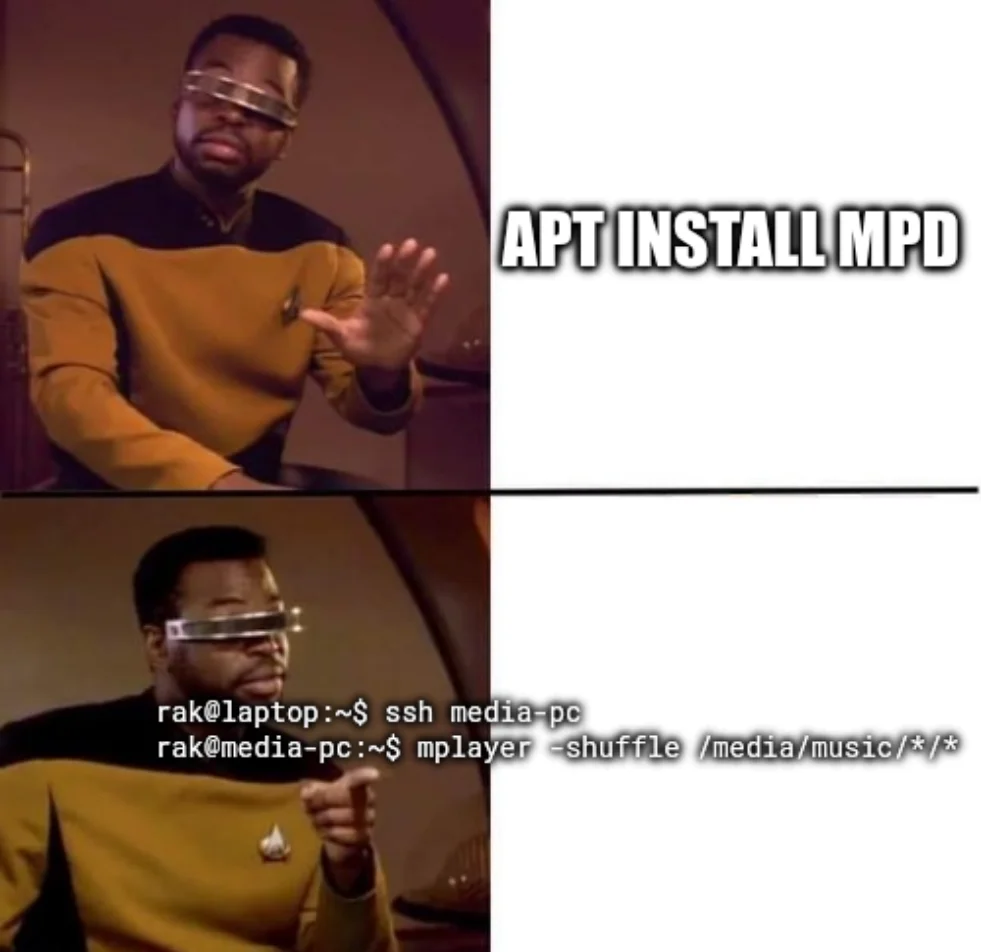 The sad thing is I have a fully functional MPD + Snapcast setup I could use (including a TUI MPD client), but this is just what I’ve always done. Old habits and such lol.