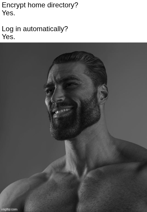 I mean login automatically on boot but with encrypted drive is ok if you’re the only user. If someone got your encryption password, they can get your data. The user password doesn’t protect a shit
