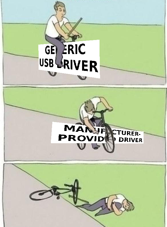 That part I could have guessed, but why manufacturer driver is worse than generic… wait, for it to be better it has to be coded better. Mystery solved, I guess