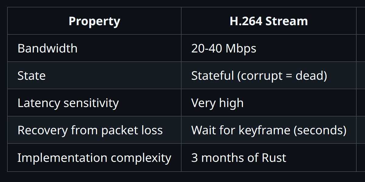 This seems like a silly workaround at first but it’s really not. If the network is unreliable, you can’t really use normal video streaming, you need to send full screenshots. Probably still a better idea to use only I-frames than a bunch of JPEGs but whatever.