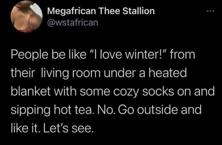arrow-up1485arrow-down1imageWinter loverslemmy.worldickplant@lemmy.world to Microblog Memes@lemmy.worldEnglish · 4 days agomessage-square107fedilink