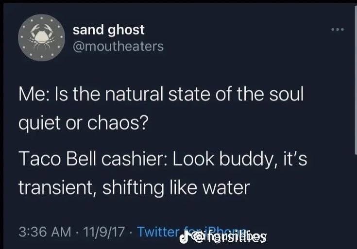 That’s not all that’s gonna be transient and shifting like water if you eat too much taco bell…