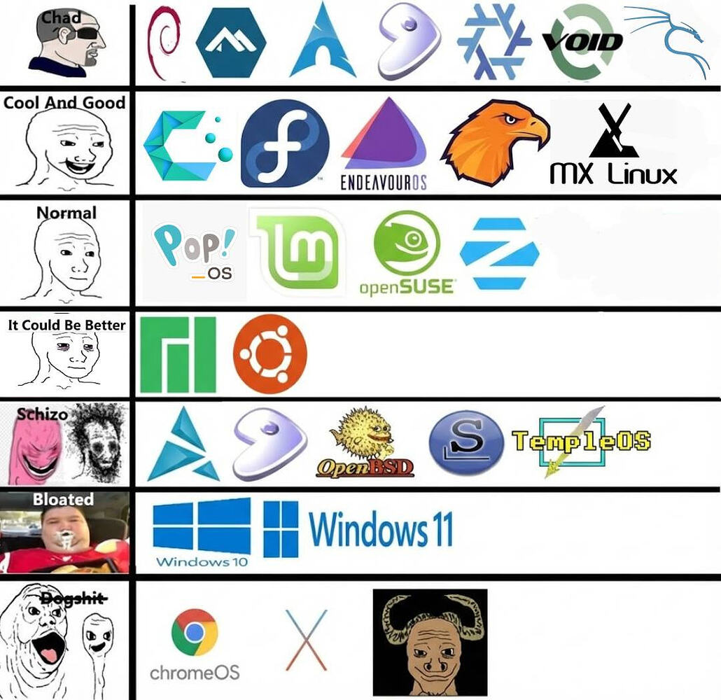 I don’t understand the hate for MacOS or Ubuntu frankly. Windows was fine until they stopped making “features” opt in. Fedora has been toying with adding AI, and my experiences with Arch have been subpar for my needs. I’m kinda at the point in my life where I don’t care as long as the OS works. They’re all so similar at the end of the day, they help me do the websites, work tools and vidya gaems.