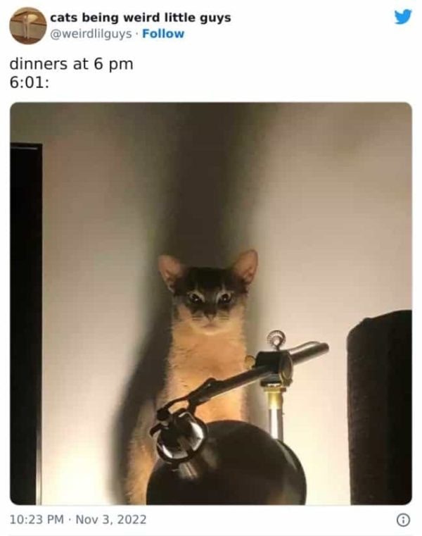 Lies, no cat has ever waited until after dinner time to make demands, always before.