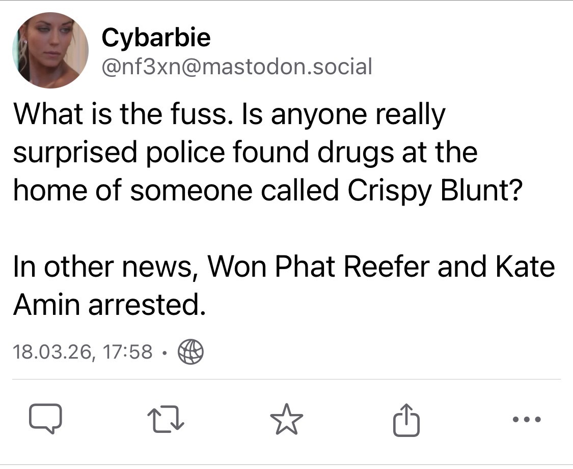 minus-squareSkullgrid@lemmy.worldlinkfedilinkEnglisharrow-up8·7 hours ago!nominativedeterminism@feddit.uk