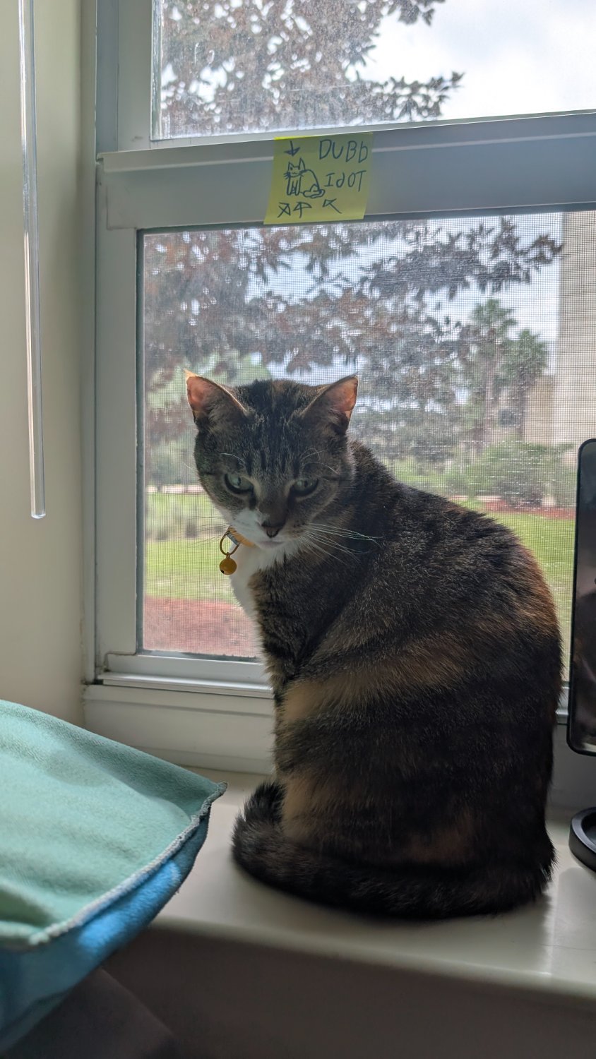 also she’s in my dorm room in all the pics, she has more space but hardly ever goes out there as she’s pretty shy. Roommate has a cat and they seem to get along decently, she’s pretty scared of him but he doesn’t wanna start a fight so they don’t really have issues. Hopefully they’ll warm up eventually.